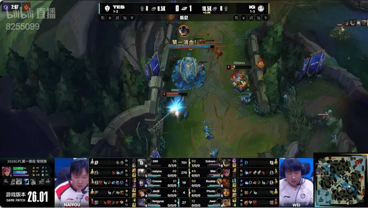 5分钟:IG上野强杀狼母拿下一血但是蔚也被狼母换掉